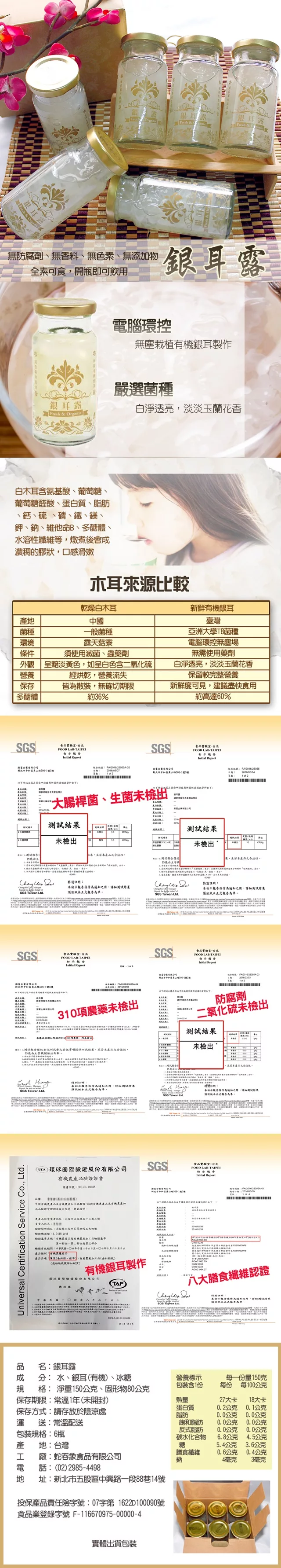 【那魯灣】纖採銀耳露 150g(有機銀耳製作)(12瓶-共2盒) 評價
